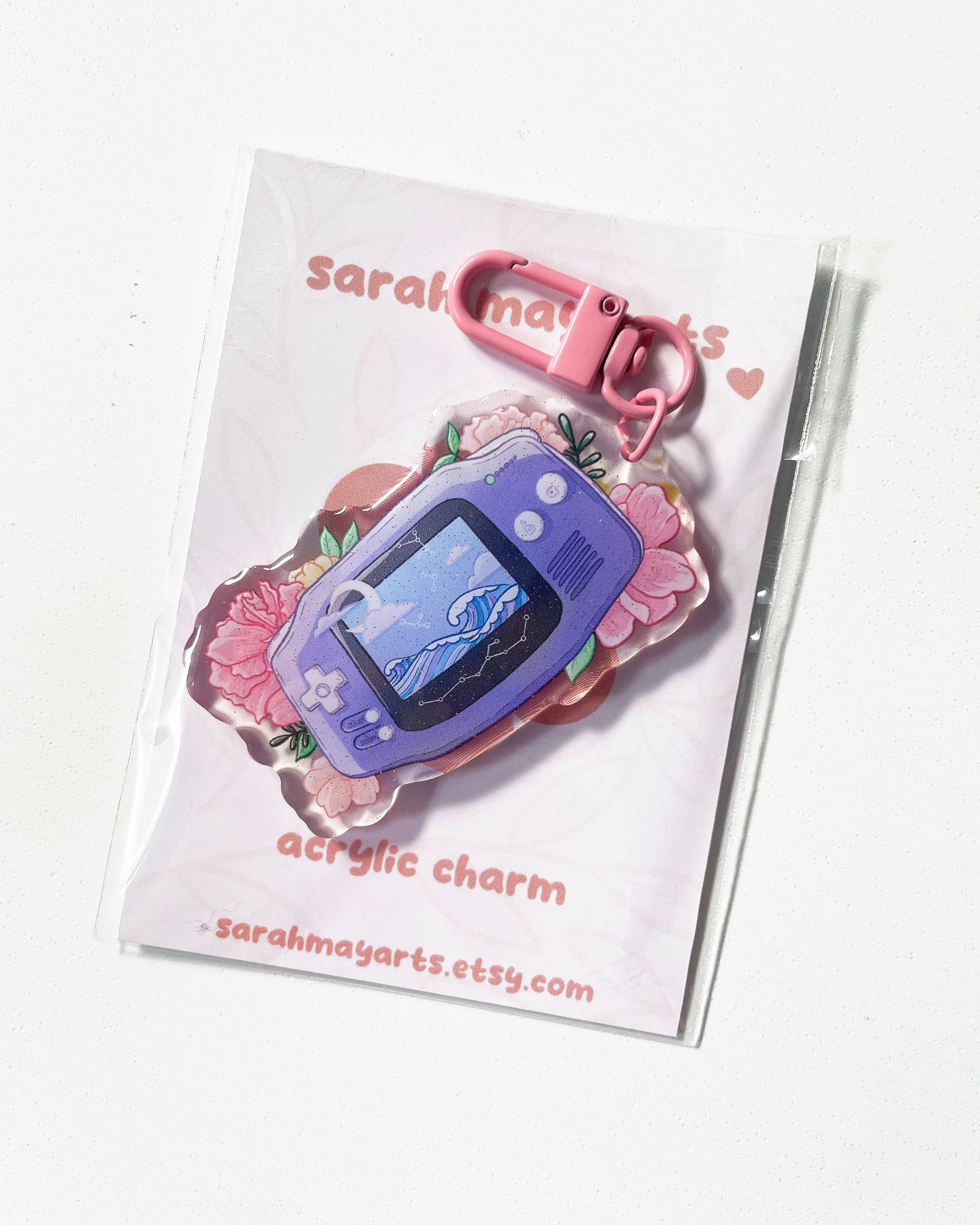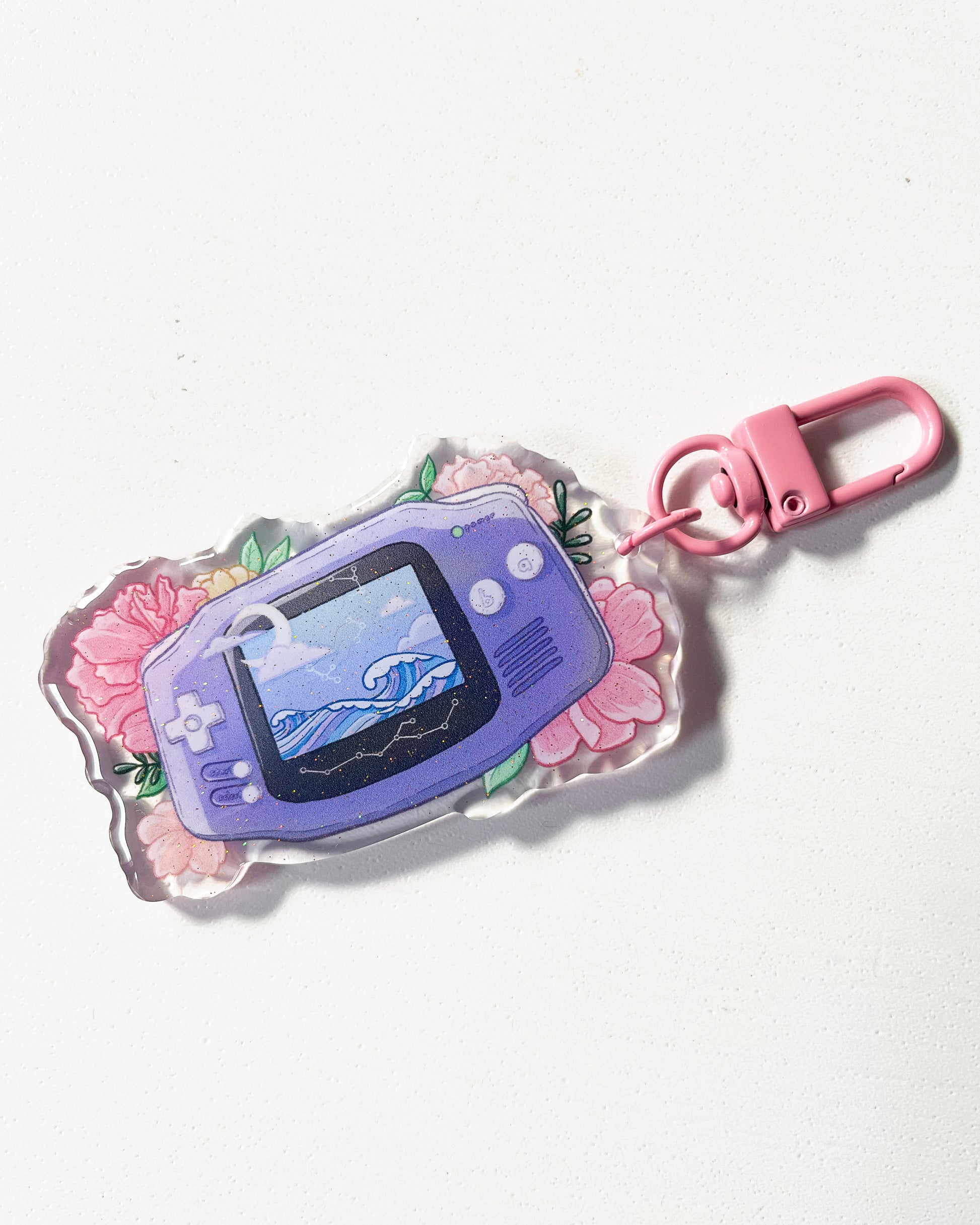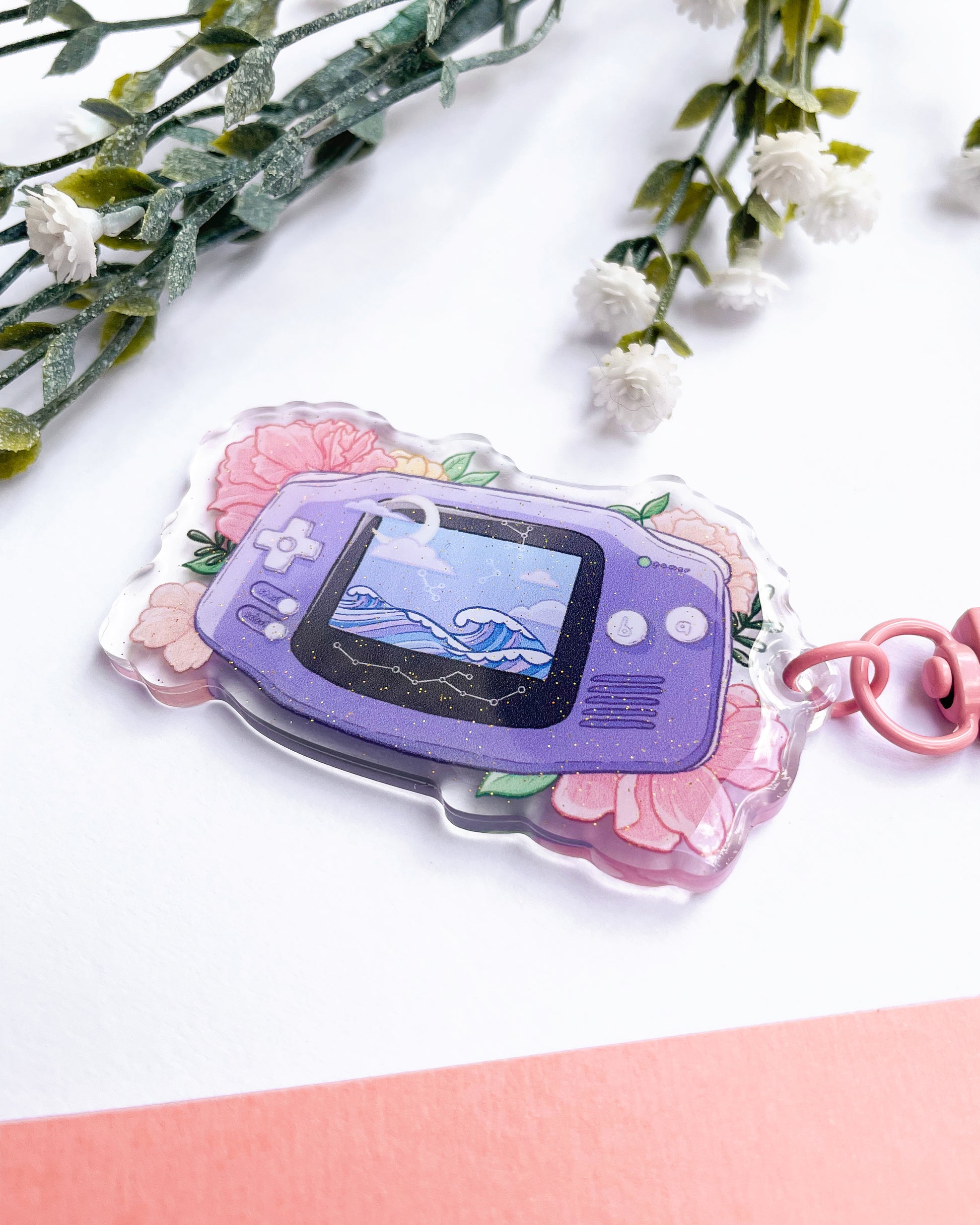 Bawa nostalgia bersama anda dengan azimat akrilik jernih berkualiti tinggi setinggi 64mm ini, sesuai untuk menghias kunci, beg, dompet dan aksesori lain anda! Azimat ini mempunyai dua sisi untuk memastikan azimat anda sentiasa terserlah, dengan satu sisi memaparkan kesan glitter.