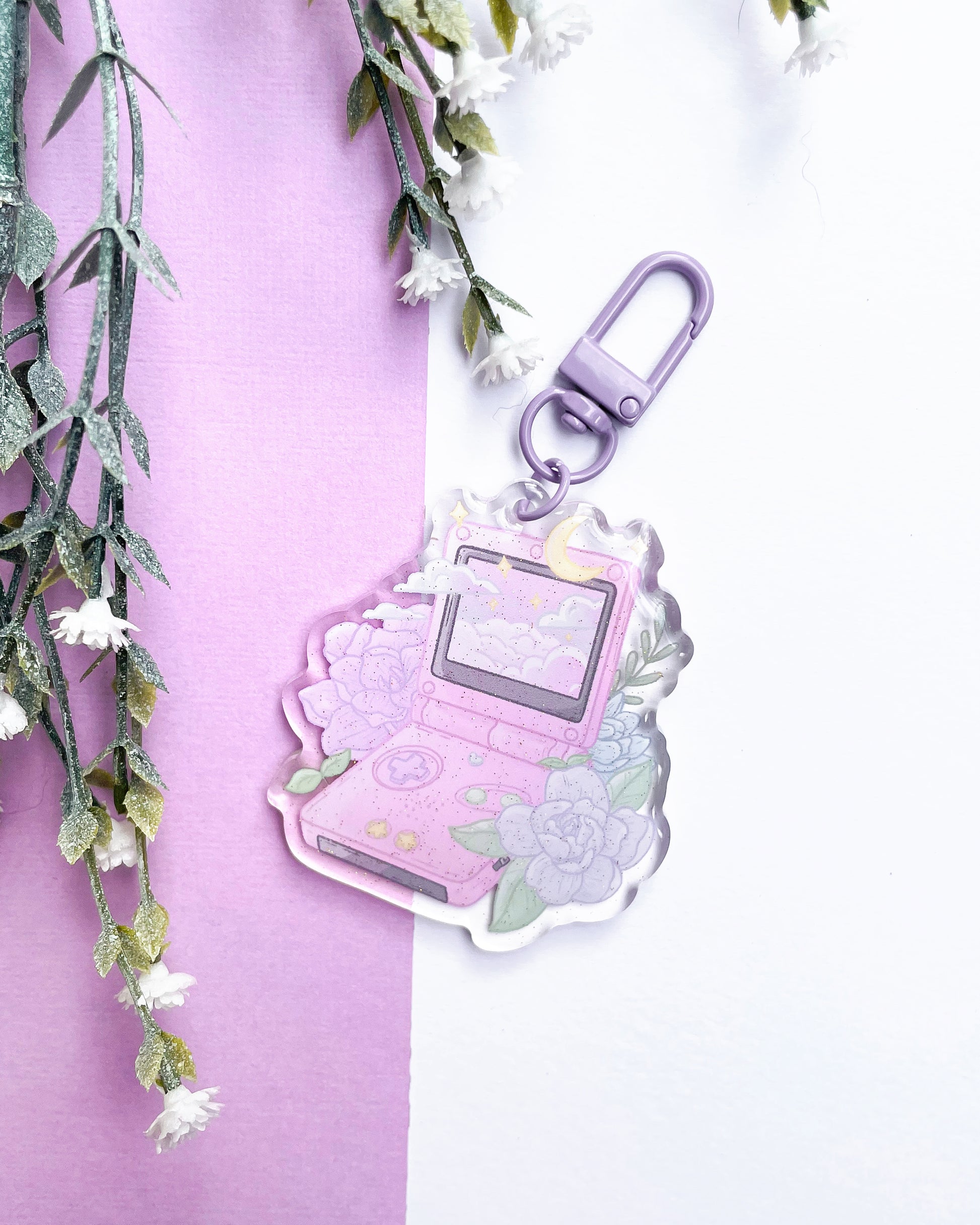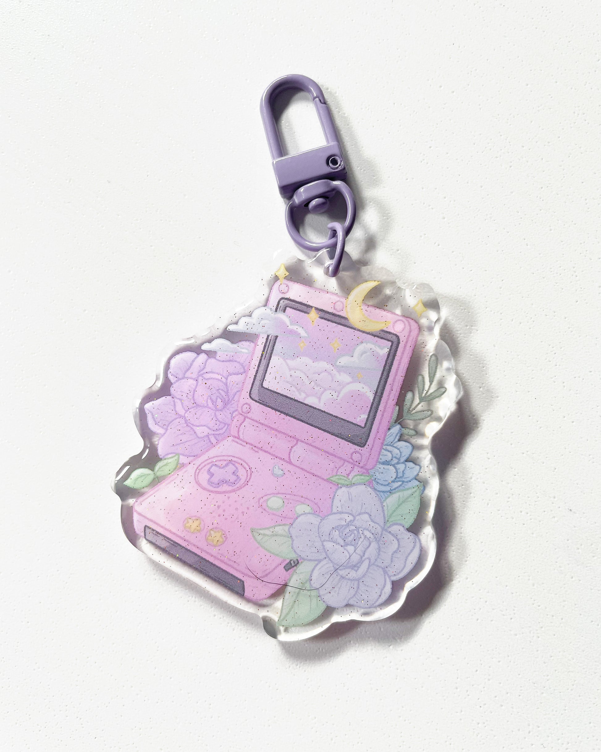 Bawa nostalgia bersama anda dengan azimat akrilik jernih berkualiti tinggi setinggi 64mm ini, sesuai untuk menghias kunci, beg, dompet dan aksesori lain anda! Azimat ini mempunyai dua sisi untuk memastikan azimat anda sentiasa terserlah, dengan satu sisi memaparkan kesan glitter.