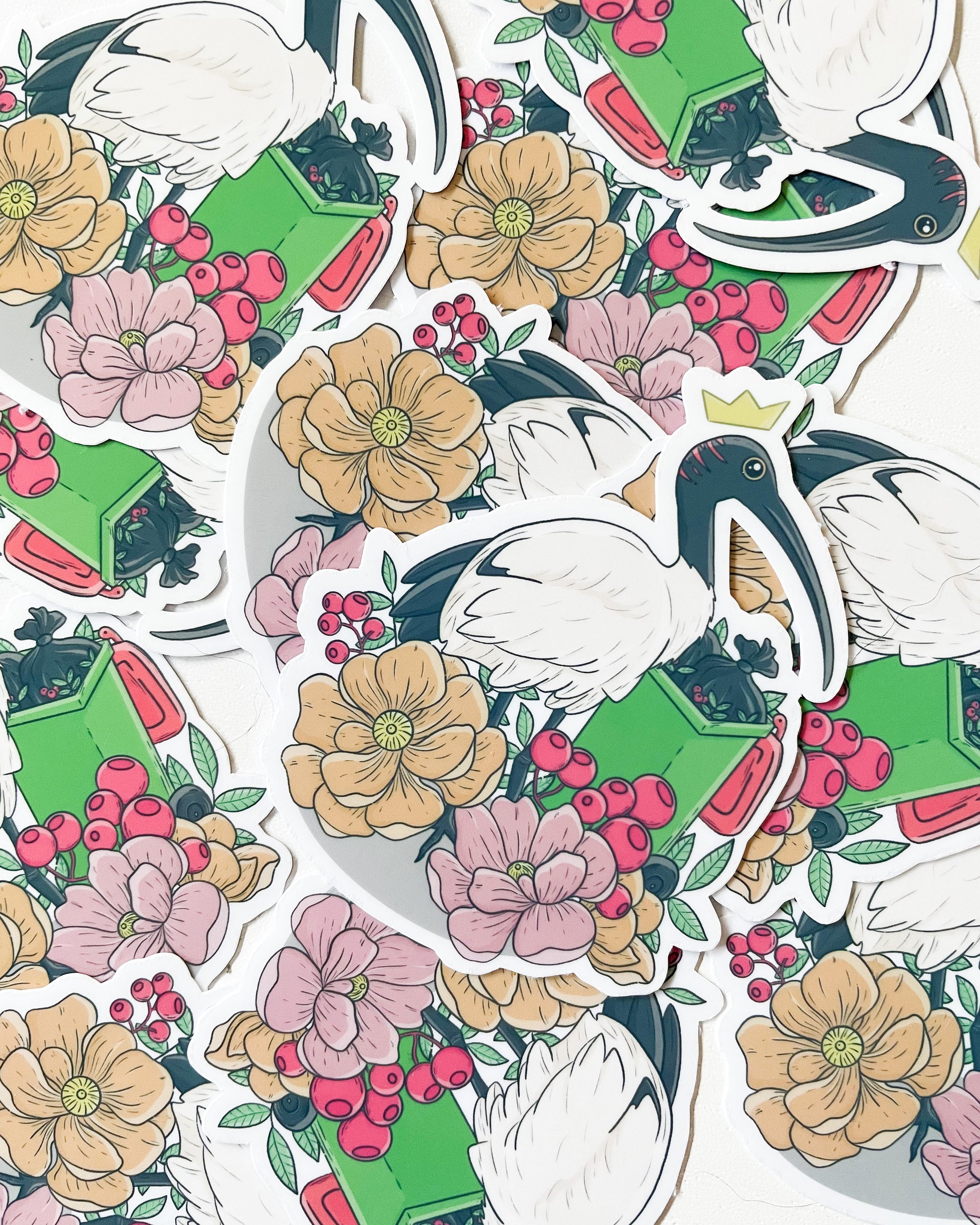 垃圾桶鸡/澳洲朱鹭防水模切贴纸